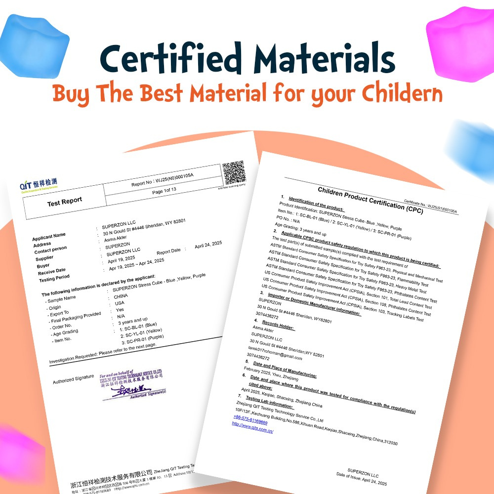 At Superzon, safety and quality come first. Our Square Stress Cube is made from certified, child-safe materials and rigorously tested to meet international standards. You can relax knowing itβs completely safe, durable, and designed with your familyβs well-being in mind.